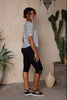 Understated and elegant, this tee is designed to go with everything. Featuring a soft round neckline, front pocket and elbow length sleeves with a subtle gathered detail.